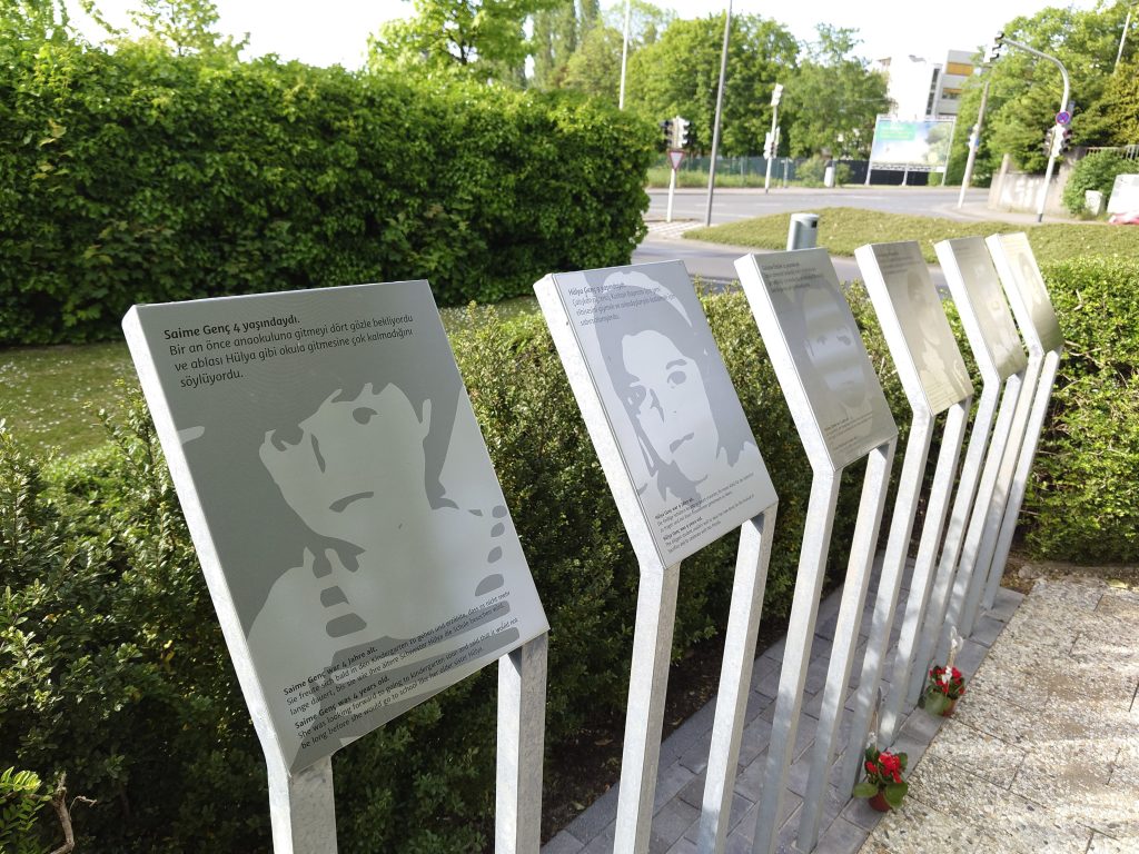 Die Familie Genç hat sich zur Gedenkfeier im Jahr 2023 Schilder gewünscht. Auf den Schildern sind die Namen und die Gesichter von den Opfern. Die Schilder erzählen von ihrem Leben. Die Schilder befinden sich neben dem Mahnmal. Und es gibt noch ein Schild. Das Schild erinnert an Mevlüde Genç. Sie ist im Jahr 2022 gestorben. Mevlüde Genç hat bei dem Brandanschlag ihre Töchter und ihre Enkelinnen verloren. Trotzdem hat Mevlüde Genç immer für Versöhnung und Freundschaft gekämpft. Mevlüde Genç war gegen Hass.